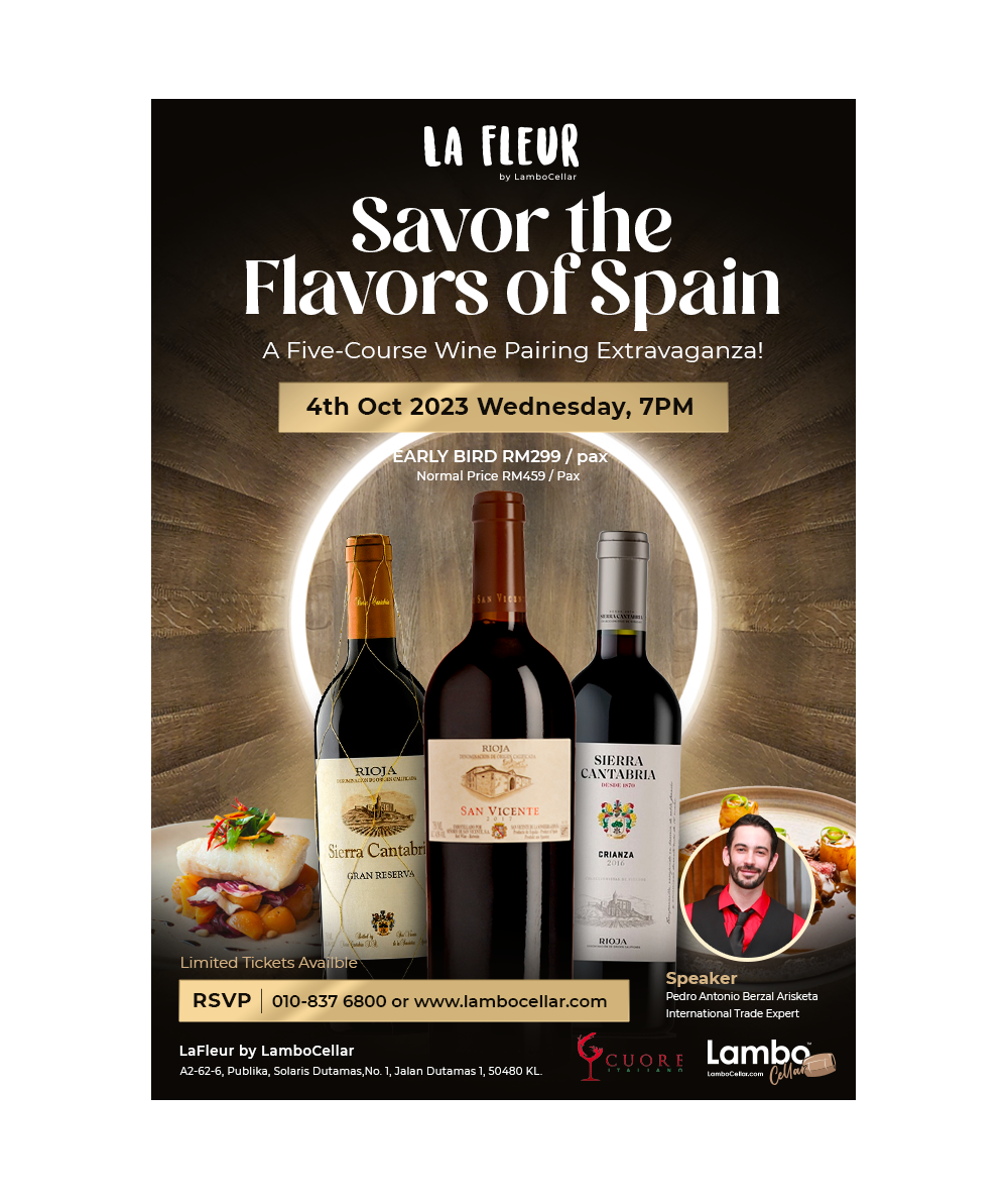 We look forward to welcoming you to La Fleur by Lambocellar for a night of Spanish gastronomic splendor. ¡Salud! 🍷🇪🇸