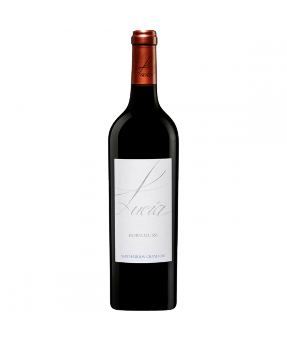 Chateau Lucia, owned by Michel Bortolussi, produces Saint-Émilion wines primarily from Merlot and Cabernet Franc. These wines have a rich, mouth-drying tannic structure, balanced by plum and black cherry fruit, chocolate, sweet spice, and savory tobacco and cedar characteristics. The grapes are harvested by hand, sorted twice, and fermented in small oak tanks. Lucia is best paired with classic meat dishes, Asian dishes, and hearty fish courses.