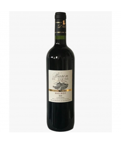 The French red wine Baron du Tertre "Cuvée Terroir" Malbec 2018 comes from Cahors and is renowned for its robust and well-structured flavor. This wine, which is made from Malbec grapes, usually has a tannic finish and powerful, juicy black currant notes. It pairs well with foods like lamb, steak, and sharp cheeses.