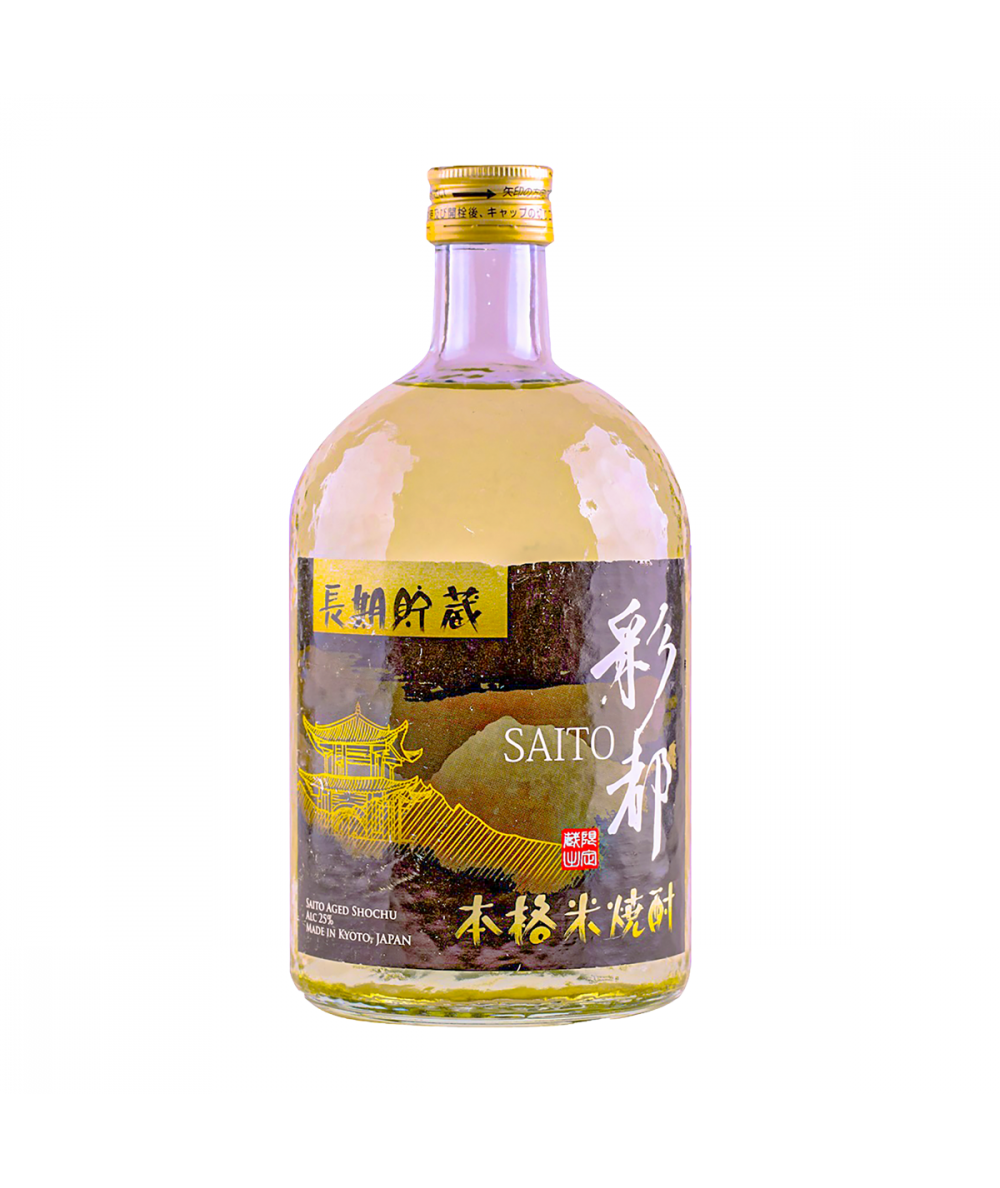 SAITO AGED SHOCHU is premium aged Shochu made from rice. 5 years storage in tank and 1 year storage using oak barrel and brandy barrel give this shochu rich flavour and special aroma such as sweet vanilla. It is recommendable for "on the rocks" and "with soda". It can be matached with fried foods and strong taste dishes.